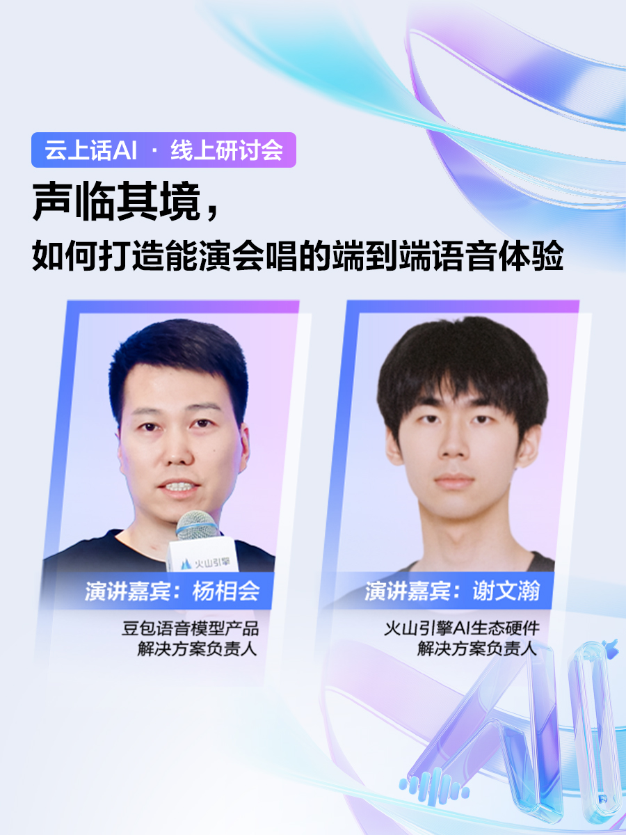 【直播预约】火山引擎·云上话AI:声临其境,如何打造能演会唱的端到端语音体验?